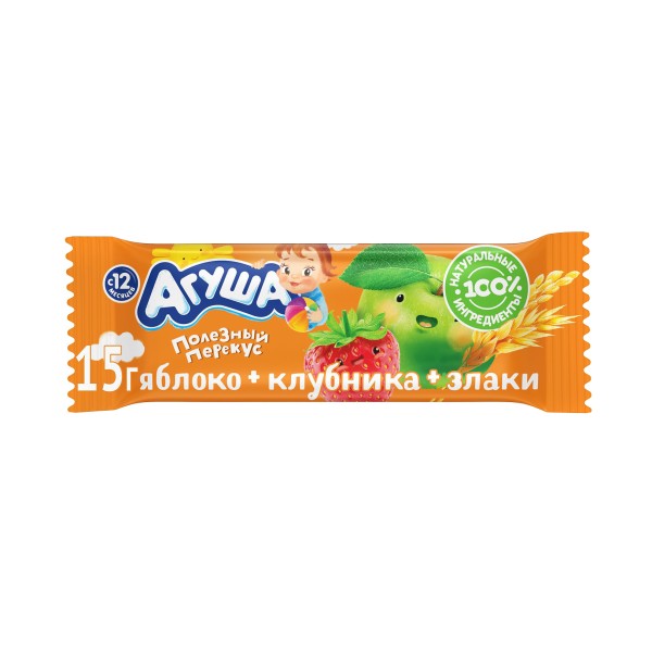 Батончик Агуша фруктовый яблоко-клубника-злаки  0,5% 15гр флоупак