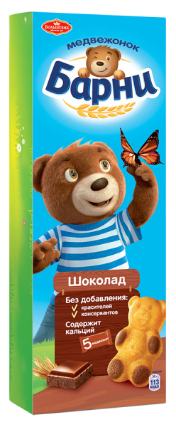 Бисквитное пирожное МЕДВЕЖОНОК БАРНИ Шоколадная начинка станет любимым лакомством вашего ребенка. Великолепное сочетание нежного бисквита и легкой шоколадной начинки. Им можно перекусить во время перемены школе или оставить лакомство на десерт. Пирожное разработано при помощи современных технологий с учетом особенностей детского организма и соответствует всем европейским стандартам качества. Натуральные ингредиенты в его составе содержат витамины и микроэлементы. Продукт прошел жесткий контроль качества. Не содержит красителей и консервантов.Состав: мука, сироп глюкозо-фруктозный, сахар, яйцо, жиры растительные, начинка шоколадная, сухое молоко, стабилизатор, разрыхлитель, сухая молочная сыворотка, эмульгаторы, соль, какао-порошок, ароматизатор.Пищевая ценность: белки 5,8г, жиры 15,2г, углеводы 59,1г.Энергетическая ценность: 390 ккал.Хранить при температуре +2`C +6`C.Срок хранения: 6 мес.