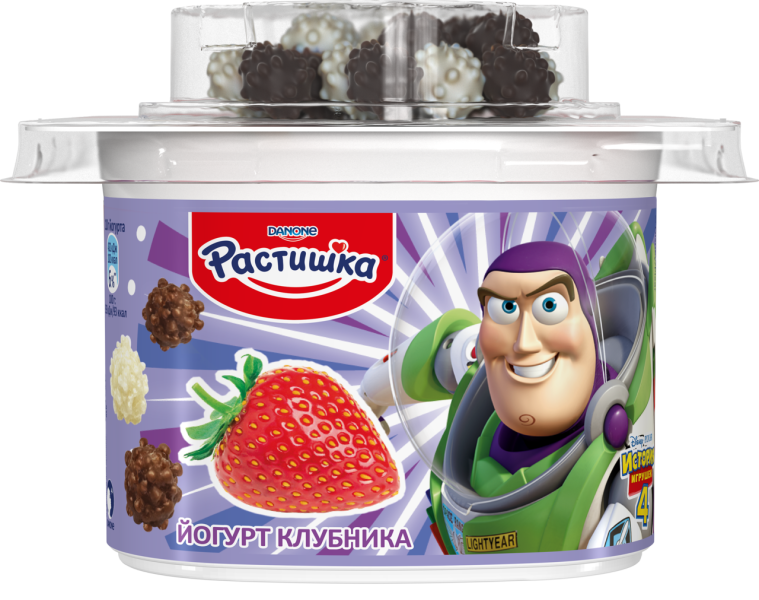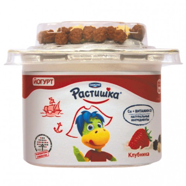 БЗМЖ Йогурт Растишка "Клубника" с белым и шоколадным драже 115гр.