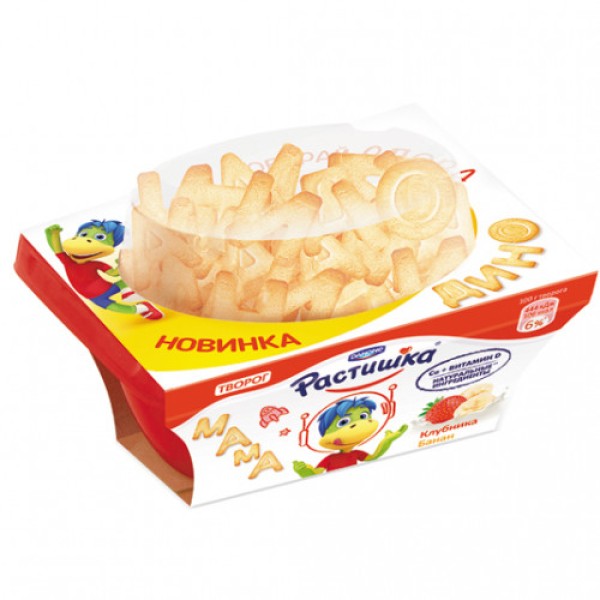 БЗМЖ Растишка творожная Клубника-Банан с печеньем "буквы" 108г