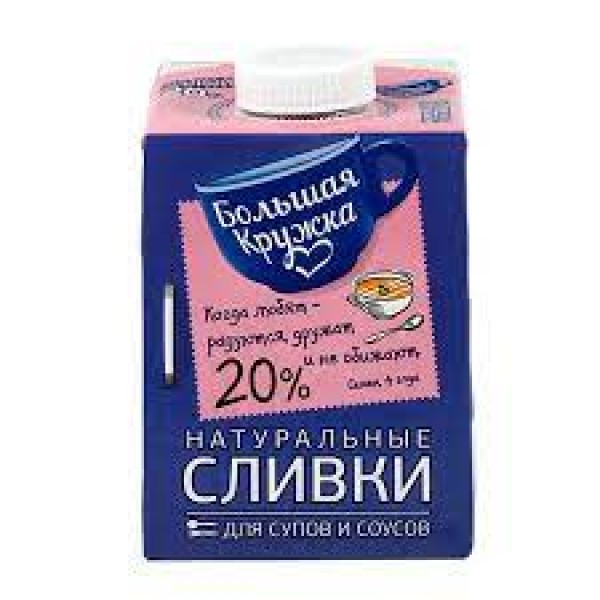 БЗМЖ Сливки Большая кружка 20% 500мл.