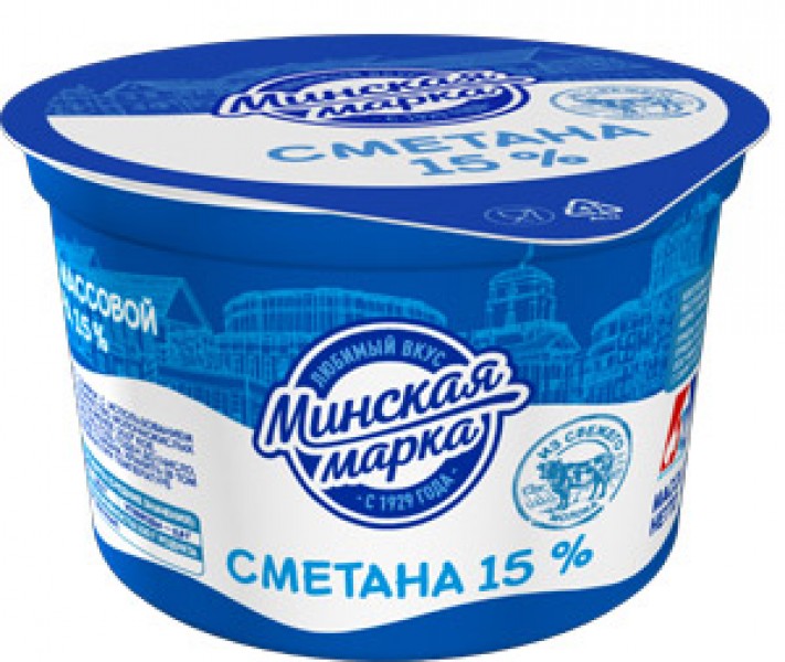 БЗМЖ Сметана Минская Марка 15% 180г стакан ММЗ