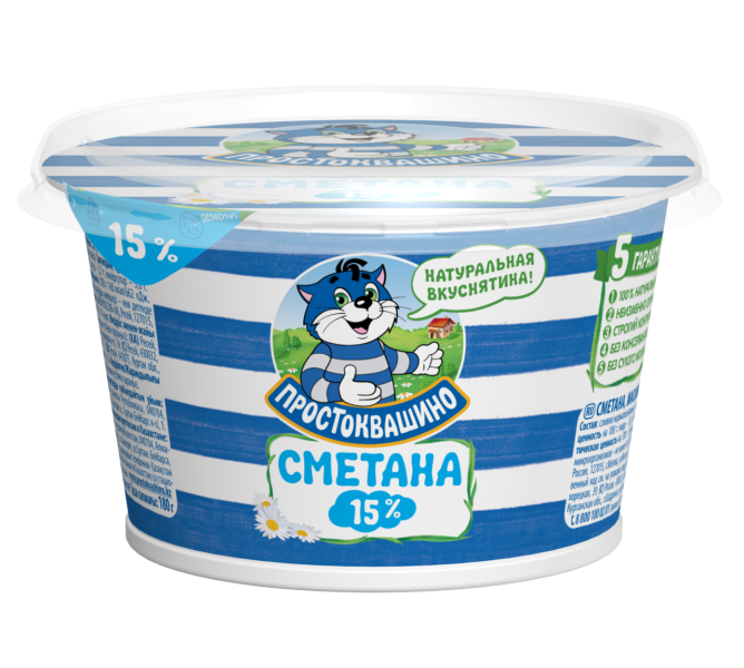 Сметана ПРОСТОКВАШИНО 15%, 180г готовится по традиционному русскому рецепту. В ее состав входят натуральные сливки и закваска полезных кисломолочных культур, что придает сметане очень богатый вкус, нежную консистенцию, а также свежий аромат.Благодаря небольшой жирности продукт прекрасно усваивается. Он может отлично дополнить различные национальные блюда: борщ, щи, сырники, блины, пельмени или голубцы. Из сметаны также можно сделать разнообразные соусы, кремы, маринады или десерты.Нежирную сметану по выгодной цене можно купить в Москве в торговом центре METRO. Оперативная доставка, удобные системы оплаты.Состав продукта: сливки, закваска молочнокислых культур.Бренд: Простоквашино.Страна производства: Россия.Рекомендуемая температура хранения: 2..6 °C.Энергетическая ценность (ккал/100г.): 160.Белки (г/100г.): 2.7.Жиры (г/100г.): 15.Углеводы (г/100г.): 3.6.