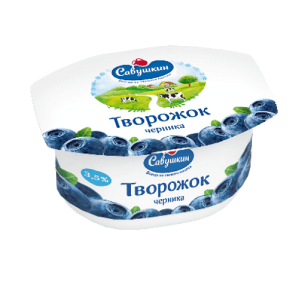 БЗМЖ Творожок с черникой 3,5% 120г стакан Савушкин