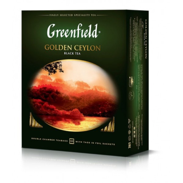 Чай GREENFIELD Golden Ceylon черный пакетированный 100 пакетиков по 2 г. Крупнолистовой цейлонский чай из провинции Ругуну, расположенной на юге острова Цейлон. Яркий аромат и благородный вкус цейлонского чая покорили мир. Неповторимое очарование ценного плантационного чая Голден Цейлон заключено в его гармоничном букете, сочетающем тонкие оттенки с силой и полнотой вкуса, который доставит истинное удовольствие ценителям. Можно пить в течение всего дня. Уникальные природные и климатические условия Цейлона идеальны для чайного растения, поэтому во всем мире цейлонский чай ценят за удивительный мягкий вкус и неповторимый аромат. Вкус цейлонского чая можно признать классическим, он гармоничный, хорошо сбалансированный. В букете Голден Цейлона сила и полнота сочетаются с тонкими оттенками. Чай сдержанной крепости с изысканным, ярким ароматом, присущим элитным цейлонским чаям. Прекрасно подходит для вечернего чаепития.Состав: чай черный. Заваривать 3-5 минут. Хранить в сухом месте без посторонних запахов. Срок годности: 36 месяцев