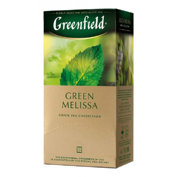 Чай GREENFIELD green melissa обладает невероятно душистым ароматом и свежестью мелиссы, которая бодрит и придает сил. Натуральная смесь настоящего китайского чая и трав дарит напитку сочный насыщенный вкус. Весьма гармоничное сочетание лимонного запаха с легким мятным оттенком и терпкостью китайского сорта создает индивидуальный, ни с чем несравнимый букет этого вида чая. Мелисса и лимон успокаивают и помогают расслабиться, а зеленый чай заботится о вашем здоровье, улучшая обмен веществ в организме. Чай GREENFIELD green melissa, 25*1,5 г вы всегда можете приобрести в ассортименте торгового центра METRO. Состав : чай зеленый байховый, листья мелиссы и мяты, ароматизатор лимон. Масса нетто: 25*1,5 г. Срок годности: 2 года. Условия хранения: хранить сухом месте. Тип упаковки: картонная коробка. Производитель: ООО «НЕП». Страна-производитель: Россия.