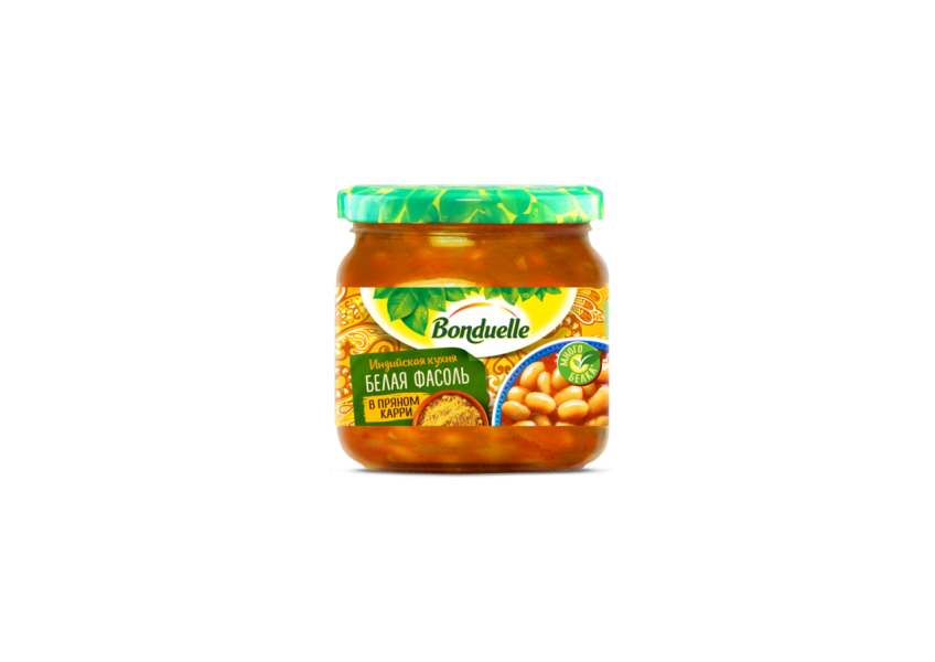 Белую фасоль BONDUELLE с соусом карри можно употреблять как самостоятельную закуску или добавлять во вторые блюда. В состав продукта входят вода, фасоль, сахар, томатный концентрат, подсолнечное масло, соль, карри, модифицированный кукурузный крахмал (используется для загустения в соусах) и чесночный порошок. Густой соус имеет приятный аромат и островатый вкус. Приправа карри не обжигает, а, наоборот, придает пикантный вкус.Купить белую фасоль BONDUELLE с карри, 350 мл можно в Москве в торговом центре METRO.Бренд: Bonduelle.Продукт: фасоль белая.Особенности состава: без консервантов и ГМО.Упаковка: стеклянная банка.Объем: 350 мл.