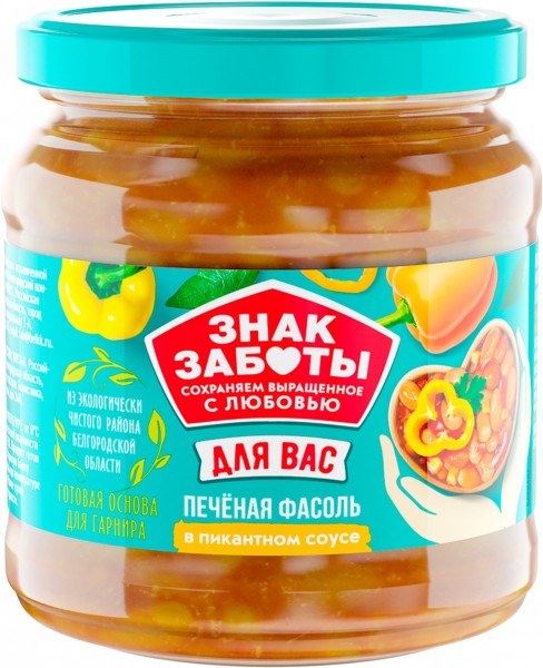 Фасоль печеная в пикантном соусе  ст/б 480гр Знак Заботы