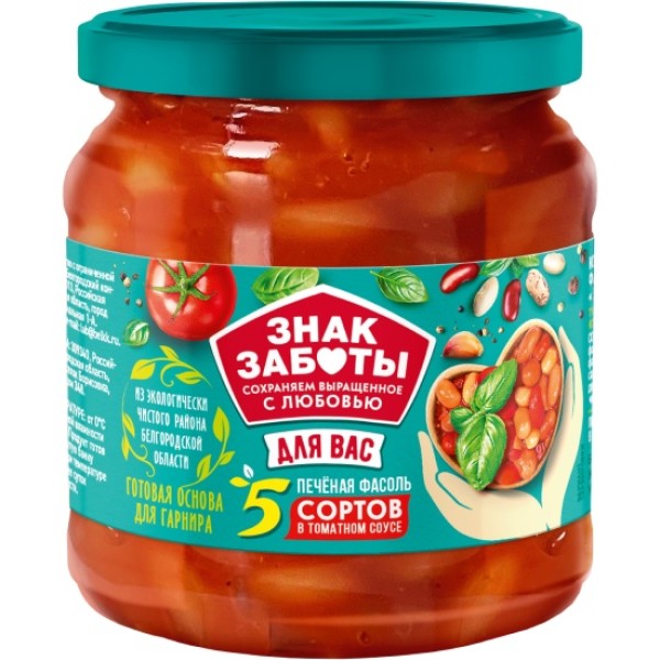 Фасоль печеная 5 сортов  в томатном соусе  ст/б 480гр Знак Заботы