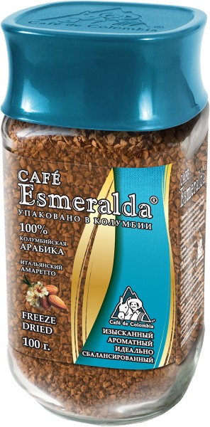 Производитель: Cafe Esmeralda; Код производителя: 571376; Страна-производитель: Колумбия; Тип упаковки: Стеклянная банка; Срок годности: 24 мес.; Штрихкод: 7702483571376; Вес: 0.385; Тип товара: Кофе растворимый; Вид кофе: Черный; Состав кофе: Арабика; Степень обжарки: Средняя; Технология производства: Сублимированный; Содержание арабики: 100%; Вкусовой акцент (вкус): Ликер Амаретто Кофе Cafe Esmeralda произведен и упакован на самой современной в мире фабрике сублимированного кофе Liofilizado в Колумбии под строгим контролем Национальной Федерации производителей кофе Колумбии. Обработка по технологии Freeze Dried - быстрая заморозка в вакууме - сохраняет максимум вкуса и аромата, как у молотого кофе. Дополнительно кофейные кристаллы обрабатываются специальным кофейным маслом, что предотвращает их рассыпание. Ароматизированный кофе имеет тонкий миндальный аромат итальянского амаретто, который подчеркивает восхитительный вкус и аромат настоящего колумбийского кофе.