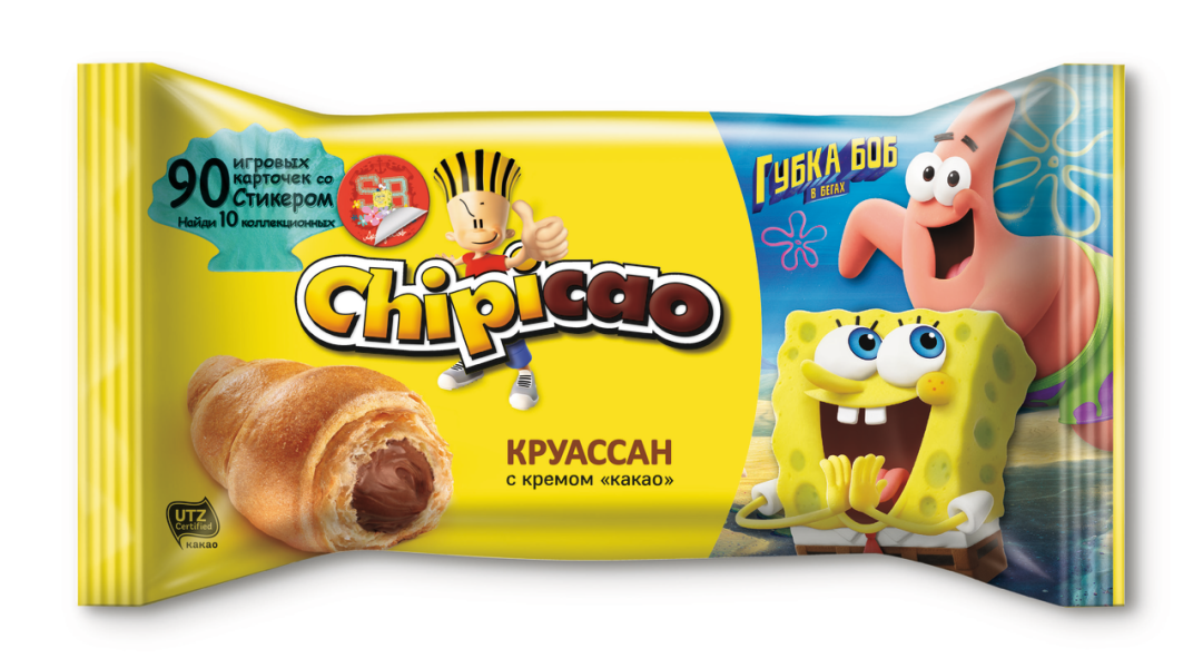 Состав: мука пшеничная хлебопекарная высшего сорта, маргарин (пальмовое масло, вода питьевая, соль поваренная пищевая, эмульгатор (моно-и-диглицериды жирных кислот), регулятор кислотности (лимонная кислота), консервант сорбат калия 0,1%), вода питьевая, сахар, глюкозный сироп, дрожжи хлебопекарные прессованные, стабилизатор (моно-и-диглицериды жирных кислот), соль поваренная пищевая, ароматизатор, молокосодержащий продукт (молочный белок, стабилизатор (ксантановая камедь), эмульгатор (рапсовый лецитин), регулятор кислотности (лимонная кислота)), консервант (пропионат кальция 0,1%). Крем какао 23%: сахар, пальмовое масло, вода питьевая, обезжиренный какао порошок 7%, молоко сухое обезжиренное, спирт этиловый ректификованный из пищевого сырья "Люкс" крепость 96,3% об., эмульгатор (эфиры полиглицерина и жирных кислот), ароматизатор, загуститель (альгинат натрия), консервант (сорбат калия 0,1%). Продукт может содержать незначительное количество яичных продуктов, соевых продуктов, орехов. Хранить при температуре не ниже +6°С. Срок годности: 5 месяцев