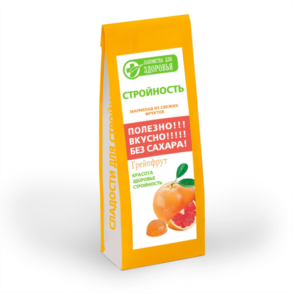 Мармелад ЛАКОМСТВА ДЛЯ ЗДОРОВЬЯ с грейпфрутом, 170 г – вкусный продукт с уникальным вкусом, который подходит для детей, так и для взрослых. Лакомство изготовлено по специальной технологии, предполагающей щадящую обработку. Благодаря этому полезные свойства компонентов максимально сохранены. В частности, грейпфрут известен своим тонизирующим свойством. Он придает бодрость и помогает в снижении лишнего веса. Это один из самых полезных цитрусовых, в состав которого входят эфирные масла, клетчатка, фитонциды, витамин C, бета-каротин, железо, магний, калий и другие не менее важные элементы. Грейпфрут улучшает пищеварение и облегчает усваивание пищи благодаря кислоте в его составе. Роль желирующего агента в мармеладе играет агар – вытяжка из морских водорослей, которая является компонентом растительного происхождения и нулевой калорийностью. В составе мармелада нет ни сахара, ни искусственных добавок. Продукт отлично подходит для людей, придерживающихся диетического и постного питания. Приобрести мармелад ЛАКОМСТВА ДЛЯ ЗДОРОВЬЯ с грейпфрутом, 170 г можно в Москве в торговом центре METRO.Бренд: Лакомства для здоровья.Страна: Россия.Вес: 170 г.Особенность: продукт без сахара.Калорийность: 283 ккал/100 г.Пищевая ценность: белки – 0,5 г; жиры – 0,13 г; углеводы – 72,6 г.Состав: фруктоза, патока, грейпфрут, желирующий агент (агар), регулятор кислотности (лимонная кислота), консервант (сорбиновая кислота).Условия хранения: хранить при температуре +10°С до +28°С. Не подвергать воздействию прямого солнечного света.Срок годности: 9 месяцев.