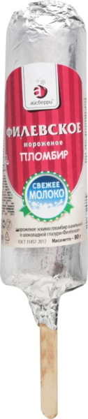 Хотите побаловать себя и своих близких? Попробуйте Мороженое ФИЛЕВСКОЕ Эскимо Пломбир, 80г. Специалисты ТМ «Филевский» воскресили советские рецептуры 60-х годов, ориентированные на качество продукта и использование только натуральных ингредиентов, и воплотили их в своем мороженом.Мороженое имеет приятный сливочный вкус классического пломбира с добавлением ванили и какао. Десерт покрыт хрустящим слоем шоколадной глазури. Сочетание советских традиций и современных технологий делает мороженое ФИЛЕВСКОЕ Эскимо Пломбир, 80г эталоном качества и вкуса.Состав: молоко коровье цельное, масло сливочное, молоко цельное сгущенное с сахаром, вода, сахар-песок, молоко цельное сухое, сухой глюкозный сироп, стабилизатор-эмульгатор (моно- и диглицериды жирных кислот, гуаровая камедь, камедь плодов рожкового дерева, карбоксиметилцеллюлоза), ароматизатор «Ваниль», идентичный натуральному.Шоколадная глазурь: растительный жир, сахар-песок, какао-порошок, эмульгатор лецитин, ароматизатор «Ваниль», идентичный натуральному. Массовая доля жира - 21,19%.Пищевая ценность 100 г продукта: белок - 3,1 г, жир - 21.1 г (в том числе молочного жира – 9,7 г.), углеводы – 21,9 г. (в т.ч.сахарозы – 17,3 г.).Энергетическая ценность: 290 ккал.Срок годности: 12 месяцев при температуре не выше минус 18С.Дата производства указана на упаковке.ГОСТ Р 52175-2003.