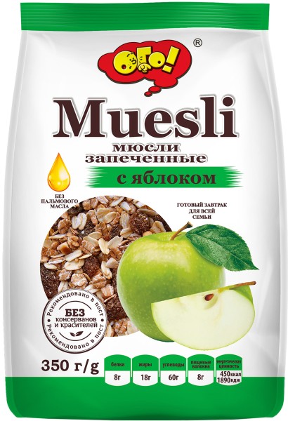 Мюсли ОГО запеченные с яблоком 350г пак. Мюсли ОГО запеченные с яблоком 350г пак.