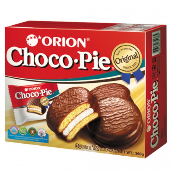 Состав: мука пшеничная общего назначения тип М55-23, сахар, вода питьевая, патока, жир кондитерский (рафинированные дезодорированные растительные масла (пальмовое, подсолнечное, соевое), эмульгатор (лецитин соевый), антиокислители (Е319, лимонная кислота)), жир специального назначения (рафинированные и дезодорированные растительные масла (пальмовое и пальмоядровое, масло ши), эмульгаторы (лецитин соевый, сорбитан тристеарат)), какао-порошок, молоко цельное сухое, разрыхлители (гидрокарбонат натрия, гидрокарбонат аммония, ортофосфат кальция 1-замещенный), глюкоза, желатин пищевой, яичные продукты, соль поваренная пищевая, какао тертое, ароматизатор (ванилин), эмульгатор (лецитин соевый), гидролизат молочного белка, загуститель (ксантановая камедь). Пищевая ценность в 100г: жиры 18г, углеводы 67г, белки 4,8г. Энергетическая ценность: 450ккал. Хранить при температуре не выше +20'C и относительной влажности воздуха не более 75%. Срок годности 12 месяцев. СТО 98948104-001-2015