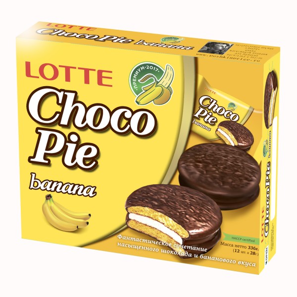 Лотте Чоко пай банан – это нежное сочетание суфле и бисквита, покрытого шоколадом.