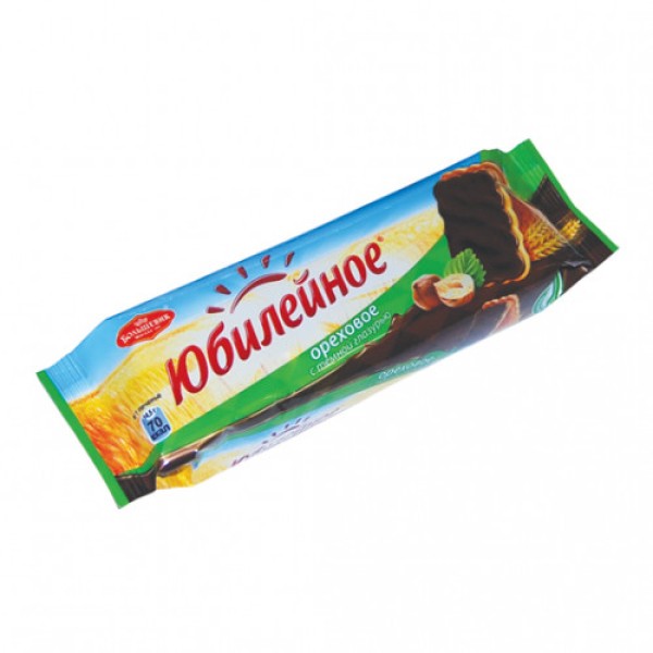 Печенье с темной глазурью Ореховое ЮБИЛЕЙНОЕ, 116 г станет хорошим дополнением к чаю или кофе, это традиционный десерт с оригинальным вкусом. Он отличается рассыпчатой текстурой и нежным ванильным ароматом. Для того, чтобы печенье было более сытным и вкусным в него добавлен измельченный фундук, а сверху оно покрыто темным шоколадом. Это кондитерское изделие изготавливается из натуральных, высококачественных ингредиентов. Более ста лет торговая марка ЮБИЛЕЙНОЕ занимается изготовлением хлебобулочных изделий и десертов. За такую большую историю она оптимизировала традиционную рецептуру и улучшила производственные технологии, чтобы каждый желающий мог насладиться знакомым с детства вкусом в отличном исполнении. Приобрести печенье с темной глазурью Ореховое ЮБИЛЕЙНОЕ, 116 г можно в Москве в торговом центре METRO.Страна: Россия.Бренд: ЮБИЛЕЙНОЕ.Серии: с глазурью.Пищевая ценность: белки – 7 г, жиры – 22 г, углеводы – 64 г. Энергетическая ценность: 480 ккал.Условия хранения: при температуре от +13°С до +23°С, с относительной влажностью воздуха не более 75%.Состав: мука пшеничная, сахар, масло растительное, жир растительный, какао-порошок, вода, сироп глюкозно-фруктозный, разрыхлитель (гидрокарбонат натрия), фундук жареный тертый, соль, эмульгаторы (лецитин соевый, Е476, лецитин подсолнечный), ароматизаторы, продукт яичный, витаминно-минеральный комплекс. Содержит пшеницу, глютен, яйца, фундук, лецитин соевый. Может содержать следы молочных продуктов и других орехов.