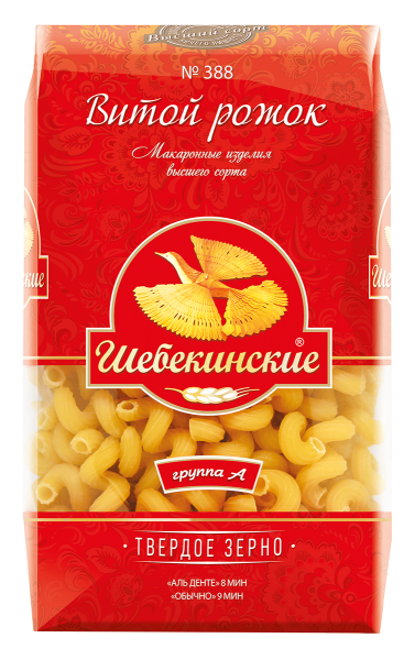 Макароны ШЕБЕКИНСКИЕ Витой рожок 388 — продукт отечественного производителя, изготовленный из твердых сортов пшеницы с добавлением воды. Изделие, насыщенное сложными углеводами, станет удачным решением для фитнес-диет и надолго сохранит прилив жизненных сил и энергии. Нередко такие макароны становятся основным блюдом для вегетарианского и постного меню.Рожки хорошо удерживают форму и не развариваются, поэтому их используют в качестве ингредиента для салатов или как гарнир к мясным и рыбным блюдам. Приготовление займет не более пяти минут, после варки рекомендуется ополоснуть изделие прохладной водой и смочить растительным маслом. Купить макароны ШЕБЕКИНСКИЕ Витой рожок 388 вы можете в Москве в торговом центре METRO.Производитель: «Макаронно-кондитерское производство», Россия.Состав: мука из твердых сортов пшеницы, вода.Пищевая ценность: белки — 13 г, жиры — 1,5 г, углеводы — 72 г.Энергетическая ценность: 350 ккал/100 г.Срок годности: 24 месяца.