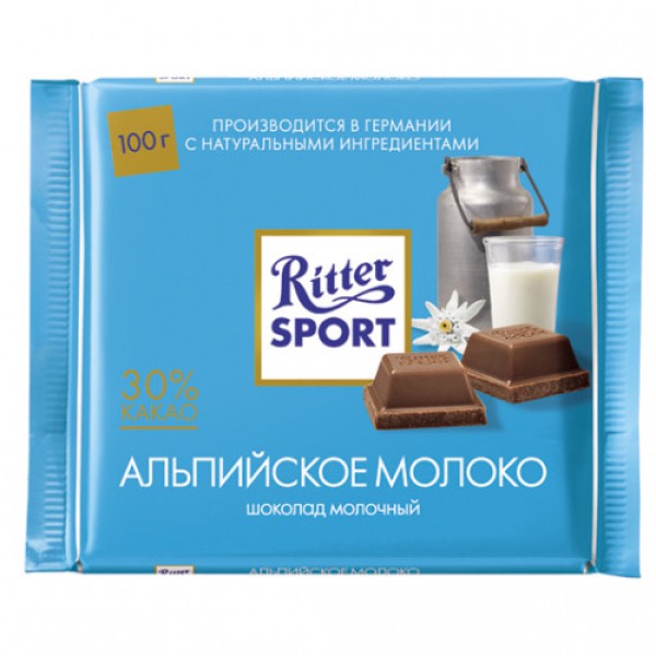 Шоколад Риттер Спорт с альпийским молоком 100г