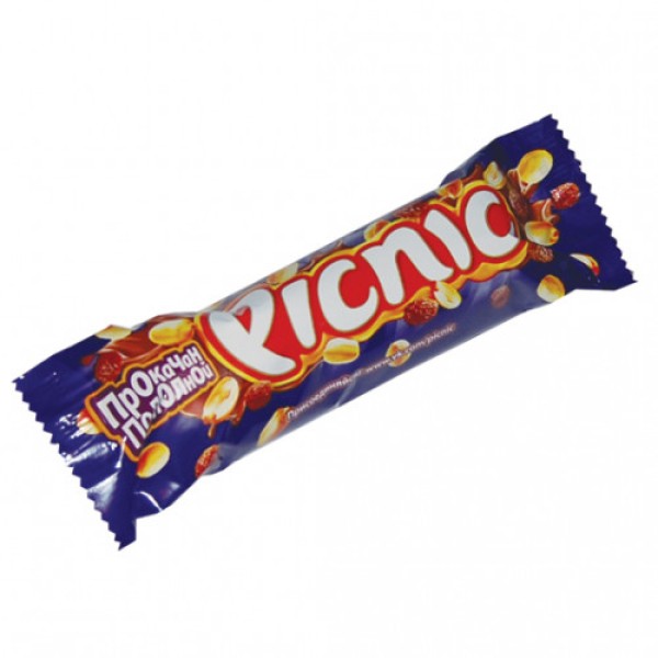 Шоколад PICNIC с арахисом и карамелью, 38 г – вкусный и оригинальный батончик, который содержит взрывную смесь арахиса, сладкого изюма, нежного воздушного риса, а внутри начинен хрустящими вафельками, проложенными мягкой карамелью. Все это полито молочным нежным шоколадом. PICNIC с арахисом и карамелью станет отличным десертом для вашего чаепития. Возьмите батончик в офис или в дорогу, чтобы перекусить и утолить голод. Его натуральный состав без красителей и вредных консервантов также не содержит ГМО и совершенно безопасен. Купить шоколад PICNIC с арахисом и карамелью, 38 г можно в Москве в торговом центре METRO.Производитель: ООО Дирол кэдбери, Россия.Состав: молочный шоколад 39%(сахар, какао масло(9,36%), молоко сухое цельное, какао тертое, сухая молочная сыворотка, молочный жир, эмульгаторы (соевый лецитин, Е476), ароматизатор ванилин идентичный натуральному, сахар, арахис(12,03%), воздушный рис (рисовая мука, сахар, экстракт ячменно- солодовый, пальмовое масло, соль), растительный жир (пальмовый), мука пшеничная, патока карамельная(кукурузная), сухая молочная сыворотка, соль, загуститель (Е 422), эмульгаторы (соевый лецитин, Е471), соль, соевое масло, ароматизаторы идентичные натуральным (карамельный, арахисовый, ванилин), карбонат натрия.Пищевая ценность: белки – 7,4 г, жиры – 28,8 г, углеводы – 56,6 г.Энергетическая ценность: 504 ккал.Срок годности: 9 месяцев.Условия хранения: при температуре от 16°С до 21°С и относительной влажности воздуха не более 75%.ГОСТ ТУ 9123-002-45257475-03.