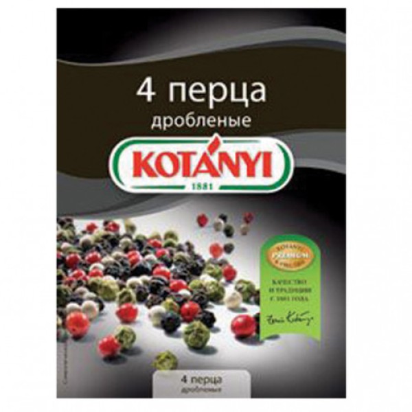 Приправа KOTANYI 4 перца дробленые, 12 г представляет собой букет из четырех изысканных специй. 4 вида душистого и ароматного перца, смешанные в идеальной пропорции станут лучшим дополнением любых блюд, включая мясо, птицу, рыбу, а также салаты и разнообразные закуски. Приправа имеет оригинальный сложный аромат и отлично дополнит как повседневный, так торжественный обед или ужин. Продукт изготавливается из отборных специй. Натуральный перец содержит много витаминов А и С, а также эфирные масла и прочие микроэлементы. Купить приправу KOTANYI 4 перца дробленые, 12 г вы можете в Москве в торговом центре METRO. Производитель: KOTANYI, Австрия. Состав: перец черный, перец белый, перец зеленый, кориандр, паприка. Пищевая ценность: белки – 0, жиры – 0 г, углеводы – 0 г. Энергетическая ценность: 0 ккал. Срок годности: 36 месяцев. Условия хранения: в сухом месте.