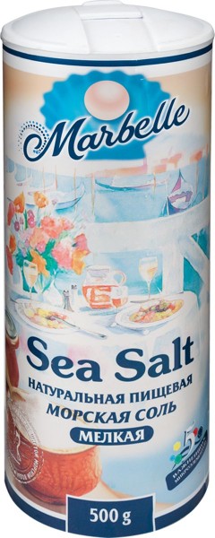 Производитель: Marbellе; Код производителя: 4607012292728; Страна-производитель: Россия; Размер: 165 х 66 х 66, мм; Штрихкод: 4607012292728; Вес: 0.580; Тип товара: Соль; Размер упаковки (Длина х Ширина х Высота): , см; Название: Marbellе морская соль мелкая, 500 г; Вес товара, г: 500