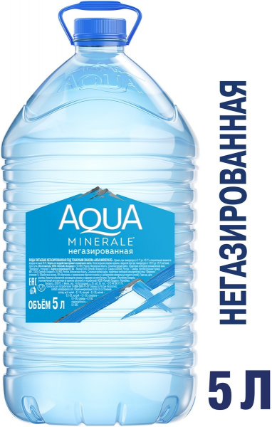 Вода питьевая AQUA MINERALE негазированная объемом 5 литров обязательно пригодится в хозяйстве. Является источником жизни и энергии на планете, человек должен соблюдать водный баланс, чтобы чувствовать себя здоровым и полным сил. Продукт высшего качества подходит для ежедневного употребления, отлично утоляет ощущение жажды, способствует скорейшему восстановлению сил. Добыча происходит из артезианских скважин на глубине до 300 метров. Именно глубокое залегание родников минеральной воды обеспечивает кристальную чистоту, так как они полностью защищены от негативного воздействия окружающих факторов. После добычи из источника до розлива по бутылкам AQUA MINERALE проходит только механическую фильтрацию, что удаляет крупные частицы, а все полезные минералы и соли сохраняются. Из-за быстрого разлива и минимального вмешательства в состав сохраняется баланс во всем спектре полезных элементов. Приобрести воду питьевую AQUA MINERALE негазированную объемом 5 литров можно в Москве в торговом центре METRO.Объем: 5 л.Газированность: негазированная.Упаковка: ПЭТ.Вид: минеральная.Количество: 1 шт.Тип: вода.Бренд: Aqua Minerale.Страна производитель: Украина.Для: всех.Тип продажи: поштучно.Назначение: пищевой продукт.Особенности: без добавок.Классификация: продукты питания.Область применения: столовая.
