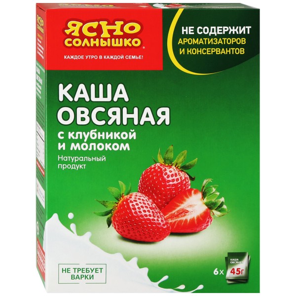 Каша Ясно Солнышко овсяная с клубникой и молоком 6п*45г (270г).