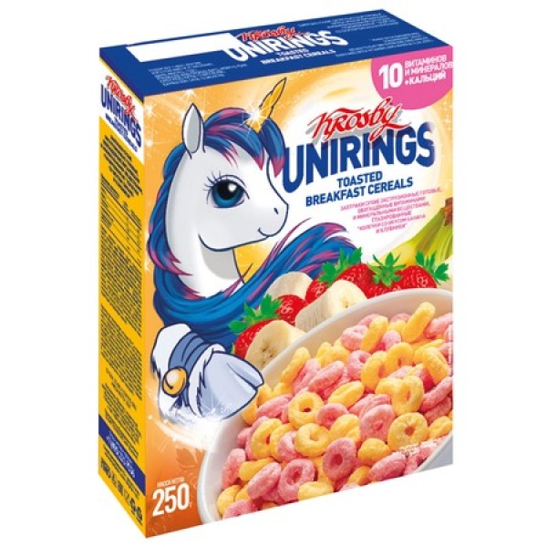 Завтрак сухой Колечки Кросби Юникон рингс банан с клубникой 250гр
