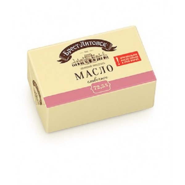 Масло БРЕСТ-ЛИТОВСК сливочное 72,5%, 180 г обладает особенным вкусом благодаря тому, что производитель использовал современные технологии, не забывая при этом о старинных рецептах. Традиционный вкус сливочного масла достигается за счет натурального сырья, которое использовалось при изготовлении этого продукта. Оно используется в домашних условиях и на предприятиях общественного питания. Сливочное масло пригодится при приготовлении бутербродов, выпечки, оно необходимо в различных кремах, незаменимо в кашах или в мясных паштетах. Его часто используют при жарке мяса, овощей, яиц и других продуктов. В масле находятся входят витамины А, В, С, D, Е, которые благотворно влияют на состояние организма. Оно является дополнительным источником энергии и содержит аминокислоты, молочные жиры существенно улучшают работу клеток головного мозга и способствуют их регулярному обновлению. Приобрести масло БРЕСТ-ЛИТОВСК сливочное 72,5%, 180 г можно в Москве в торговом центре METRO.Бренд: Брест-Литовск.Производитель: Савушкин Продукт.Страна: Беларусь.Тип продукта: сливочное масло.Вид сливочного масла: сладкосливочное, несоленое.Разновидность сливочного масла: крестьянское.Жирность: 72,5%.Сорт: высший.Вид упаковки: фольгированная упаковка.Условия хранения: при температуре от -18°С до -14°С и относительной влажности воздуха не более 90%.Срок хранения: 4 месяца.Условия хранения после вскрытия упаковки: при температуре от +2°С до +6°С (не более 2 месяцев).Вес: 180 г.Состав: пастеризованные сливки.Пищевая ценность на 100 г: белки 0,8 г, жиры 72,5 г, углеводы 1,3 г, калорийность 660,9 ккал.