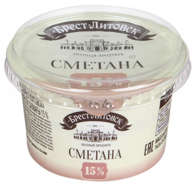 АКЦИЯ!!! БЗМЖ Сметана 15% пл/ст 180г Брест-Литовская