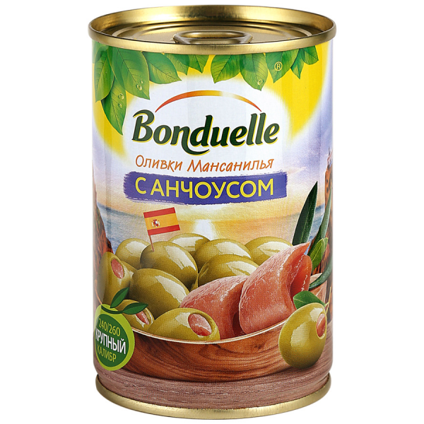 Оливки "Бондюэль" с анчоусом 300гр