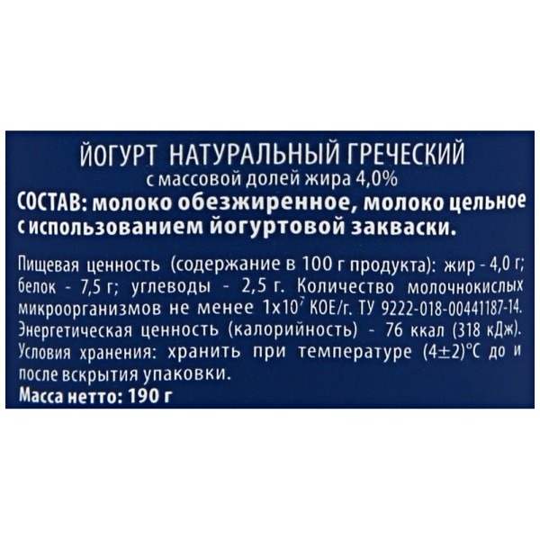 БЗМЖ Йогурт натуральный "Греческий" 4% 190г