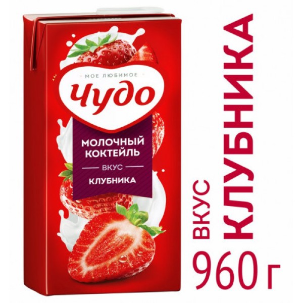 Невероятно нежный по консистенции молочный напиток ЧУДО Клубника, 2% жирности станет отличным решением для диетического питания. Содержание всего 67 ккал на 100 г делает его легким для усвоения. Продукт положительно влияет на работу ЖКТ.В составе напитка – натуральное молоко: источник кальция и витаминов, поэтому ЧУДО подойдет для детского питания. Насыщенный аромат и вкус клубники дарят продукту утонченный вкус, который понравится даже самым искушенным сладкоежкам. Продукт сможет служить отличной заменой традиционного десерта. На основе коктейля можно готовить муссы и желе, добавлять в мороженое.Позвольте себе разнообразить стандартное меню вместе с молочным напитком ЧУДО Клубника, 2% 950г. Вы всегда сможете приобрести коктейль в Москве в торговом центре METRO по привлекательной цене.Состав: молоко нормализованное, сахар, ароматизатор идентичный натуральному - клубника, стабилизатор – каррагинан, краситель натуральный - кармин.Пищевая ценность в 100г: белки — 2,8 г, жиры — 2 г, углеводы – 9,5г.Калорийность: 67 ккал.Масса нетто: 950 г.Условия хранения: хранить при температуре от 0C до +25С.Открытый пакет хранить в холодильнике.Срок годности: 6 месяцев.Тип упаковки: плотный картонный пакет типа Тетра Пак.Производитель: ОАО «Вимм-Биль-Данн».Страна-производитель: Россия.
