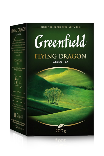 Чай GREENFIELD Flying Dragon зеленый листовой, 200 г – это зеленый байховый чай, который обладает тонизирующим эффектом и отлично взбодрит вас ранним утром, а также прекрасно утолит жажду летом в жару. Продукт имеет крупные чайные листья и приятный ароматный, чуть с горчинкой, мягкий вкус. Чай упакован в герметично закрытый пакет из серебристой фольги, что позволяет сохранить все полезные свойства и элементы, которые он содержит, а это витамины C, К, В1, В2, кофеин, минералы и кислоты, благоприятно влияющие на поддержание иммунитета, зрения, нервной, сердечно-сосудистой и пищеварительной систем. Любители зеленого чая оценят приятное соотношение цены и качества данного продукта. Приобрести чай GREENFIELD Flying Dragon зеленый листовой, 200 г вы можете в Москве в торговом центре METRO.Производитель: Greenfield Tea Ltd, Великобритания.Состав: китайский чай зеленый байховый.Срок годности: 3 года.Условия хранения: хранить в чистом, хорошо вентилируемом помещении без посторонних запахов с относительной влажностью воздуха не выше 70%.Рекомендации к использованию: засыпать чай в заварочный чайник из расчета чайная ложка на чашку. Залить кипятком и настаивать 3-5 минут.