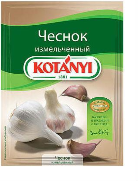 Чеснок KOTANYI, 28 г – это универсальная и любимая многими приправа, которая используется во время приготовления самых разных блюд. Такая приправа обязательно найдет свое применение, поэтому рекомендуется иметь ее на каждой кухне. Сушеный чеснок сохраняет все характерные вкусовые особенности свежего, поэтому использовать его можно как для горячих блюд, так и для холодных или салатов. Он также отлично подойдет для соусов и маринадов (даже тех, которые используются при консервировании овощей). Все, кто любит чеснок, и постоянно использует его во время приготовления первых и вторых блюд, мяса, птицы или салатов, обязательно найдут ему применение. Приобрести чеснок KOTANYI, 28 г можно в Москве в торговом центре METRO.Бренд: KOTANY.Страна: Австрия.Вес: 28 г.Условия хранения: в сухом месте.Срок хранения: 4 года.Вид пряностей: плоды.Вид плодов: чеснок.Пищевая ценность на 100 г: белки – 15,8 г, жиры – 0,3 г, углеводы – 70,4, калорийность – 363 ккал.Формат: измельченная.Упаковка: бумажная пачка.