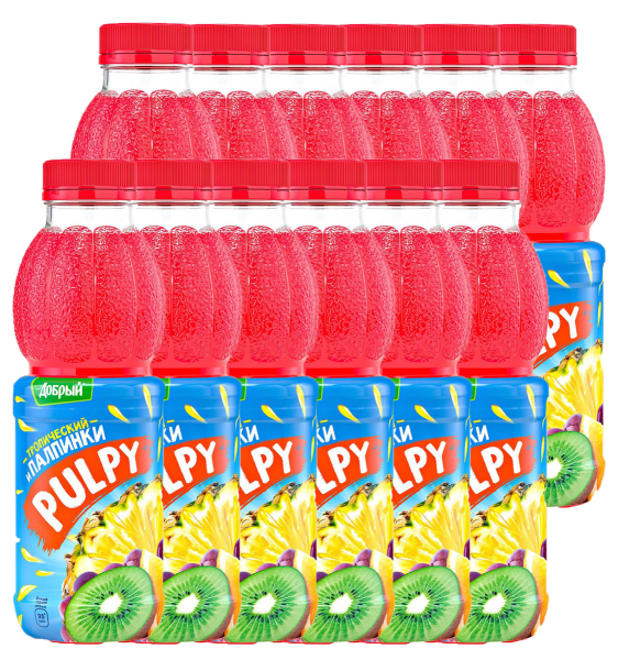 Сокосодержащий напиток PULPY Тропический, 0,9л обладает изысканным, богатым вкусом. Продукт отлично сочетается с кондитерскими изделиями. Можно взять напиток с собой в дорогу или пить дома. Удобная форма бутылки с сужением и широкое горлышко позволяют полноценно наслаждаться вкусом. Напиток производят на основе натуральных ингредиентов. Продукт асептически упакован. Для его транспортировки и хранения на складах созданы специальные условия, которые предохраняют от порчи. В итоге до покупателей сокосодержащий напиток PULPY Тропический, 0,9л доходит неизменно высокого качества. Приобретайте продукт в Москве в торговом центре METRO Cash&Carry по выгодной цене.Состав: апельсиновый сок, мякоть апельсина, сок красного винограда, апельсиновый сок, мандариновый сок, банановое пюре, сок киви, ананасовый сок, сахар, регулятор кислотности – лимонная кислота, натуральный краситель – антоцианы, стабилизатор – пектин, натуральный ароматизатор – тропический, антиокислитель – аскорбиновая кислота, вода.Пищевая ценность на 100 мл: углеводы 12,0 г.Энергетическая ценность: 48 ккал.Страна-производитель: Россия.Срок годности: 9 месяцев.