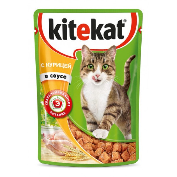 Корм влажный для кошек KITEKAT с сочными кусочками курицы в соусе, 85 г разработан для полноценного питания животных любого возраста. Лакомство на основе мяса имеет привлекательный для питомцев вкус, полностью сбалансировано необходимыми полезными веществами, дополнено витаминами и микроэлементами. Корм подходит для животных всех пород, поддерживая здоровье. Он представлен в компактной герметичной упаковке, не занимающей много места при хранении. Для взрослой кошки весом около 4 кг рекомендуется 3-4 пакета корма в день, которые нужно разделить на как минимум на два приема. При этом необходимо следить, чтобы чистая питьевая вода всегда оставалась в свободном доступе у животного. Приобрести корм влажный для кошек KITEKAT с сочными кусочками курицы в соусе, 85 г можно в Москве в торговом центре METRO.Состав: мясо и субпродукты (в том числе курица минимум 10%), злаки, таурин, витамины, минеральные вещества.Пищевая ценность в 100 г продукта: белки - 6 г; жиры - 3,5 г; зола - 2,5 г; клечатка - 0,3 г; витамин А - не менее 150 МЕ; витамин Е - не менее 0,9 мг; влага - 84 г.Условия хранения: хранить при температуре от +4 до +35?C и относительной влажности воздуха не более 75%.Рекомендуемая дневная норма потребления: кошки до 4 кг - 400 г, беременная - 600 г, кормящая - 800 г.Страна-производитель: Россия.