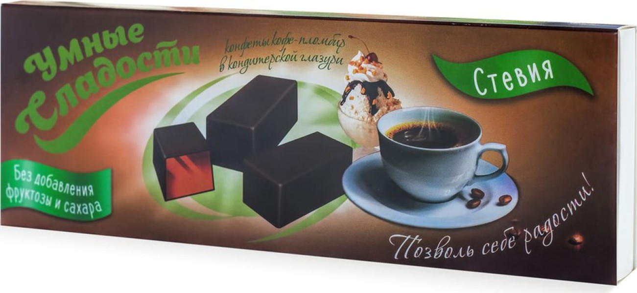 Производитель: Умные сладости; Код производителя: 4603725964723; Страна-производитель: Россия; Тип упаковки: Картонная коробка; Срок годности: 5 мес.; Вкус: Кофе,Мороженое; Штрихкод: 4603725964723; Вес: 0.125; Тип товара: Конфеты; Размер упаковки (Длина х Ширина х Высота): , см; Название: Умные сладости конфеты желейные со вкусом кофе-пломбир в кондитерской глазури, 105 г; Вес товара, г: 105; Название уценненого товара: Умные сладости конфеты желейные со вкусом кофе-пломбир в кондитерской глазури, 105 г; Вид конфет: Буханка; Срок годности в днях: 150; Белки, г/100 г: 1, 0; Жиры, г/100 г: 7, 0; Углеводы, г/100 г: 73, 0; Энергетическая ценность, ккал/100 г: 310; Условия хранения: В прохладном темном месте, при температуре до +22`C, с относительной влажностью воздуха не более 75%; Срок годности, дн. (служебный): 152