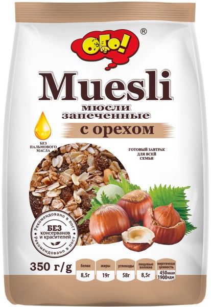 Мюсли ОГО запеченные с орехом 350г пак.