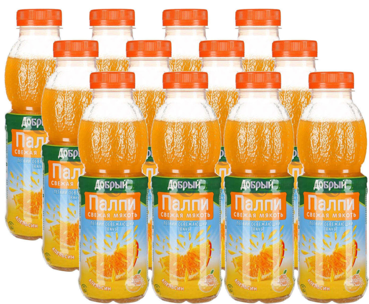 Сокосодержащий напиток ДОБРЫЙ PULPY Апельсин, 0,45л освежит, взбодрит и вдохновит своим ярким вкусом.В основу продукта легли сок и мякоть спелых солнечных плодов апельсина – фрукта, хранящего в себе тепло лета. Сок содержит только полезные добавки и только натуральные красители и загустители. Об этом говорит ярко выраженный вкус, цвет продукта, а также его консистенция.Сок наполняет собой удобную бутылочку, которая хорошо лежит в руке и прекрасно умещается в любую сумку. Напиток удобно взять в дорогу или поставить на стол на вечеринке, чтобы ее посетители могли утолить жажду.Покупайте сокосодержащий напиток ДОБРЫЙ PULPY Апельсин, 0,45л в Москве в METRO Cash&Carry.Состав: апельсиновый сок, мякоть апельсина, сахар, E330, натуральные загустители: E440, E414, E445; антиокислитель – E300, натуральный краситель – E160a, натуральные ароматизаторы апельсина, вода.Пищевая ценность в 100г продукта: белки 0,5г, жиры 0,1г, углеводы 11,6г.Энергетическая ценность: 48 ккал.