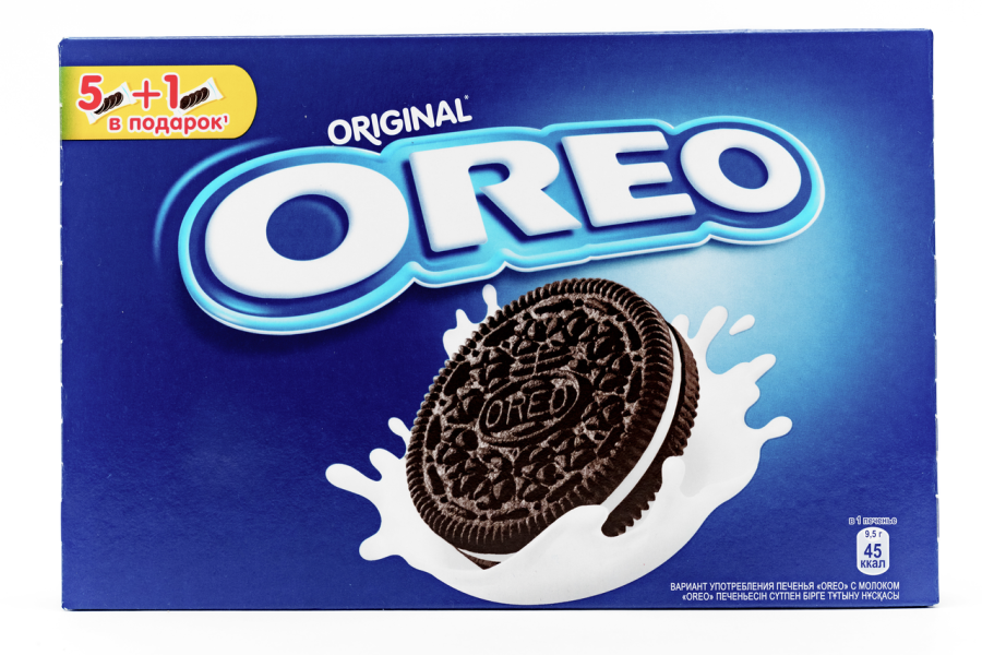 Шоколадное печенье OREO, 228г - это сладкий «сэндвич» со сливочной начинкой, который давно успел завоевать любовь сладкоежек по всему свету. Продукт стал номером один в своей категории во многих странах. За более чем столетнюю историю содержимое и внешний вид кондитерского изделия неоднократно менялись, благодаря чему вкус десерта становился все более совершенным.Производитель рекомендует есть печенье вместе с молоком, предварительно разъединив половинки и обмакнув в напиток ту, что останется без начинки. Удобная красивая упаковка привлекательно выглядит, что делает десерт хорошим вариантом для подарка или знака внимания.Приобрести шоколадное печенье OREO, 228г по привлекательной цене можно в Москве в торговом центре METRO.Производитель: ООО «Мон`дэлис Русь», Россия.Вес: 228 г.Состав: мука пшеничная, масло растительное, жир растительный, вода, какао-порошок, крахмал кукурузный, сироп глюкозно-фруктозный, соль, разрыхлитель (гидрокарбонат натрия), эмульгаторы (лецитин соевый, лецитин подсолнечный), ароматизатор ванилин.Содержит пшеницу, глютен, лецитин соевый.Может содержать следы яиц, молочных продуктов.Пищевая ценность в 100г: белки - 5,1г, углеводы - 65,5г, в том числе сахара - 36,0г, жиры - 20,0г, в том числе насыщенные жирные кислоты - 9,0г, пищевые волокна - 1,9г, натрий - 0,41г.Энергетическая ценность: 460 ккал.Хранить при температуре (15+5)°С и относительной влажности воздуха не более 65%.Срок годности: 9 месяцев.ТУ 9131-001-40449419.