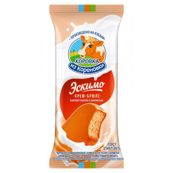 Пломбир Коровка из Кореновки крем - брюле в белой глазури с карамелью 70г.
