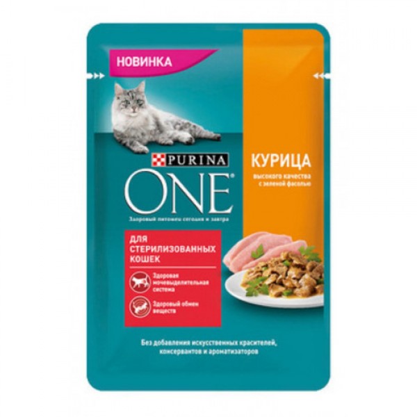 PURINA ONE для кошек Кур.сЗелБоб.75г