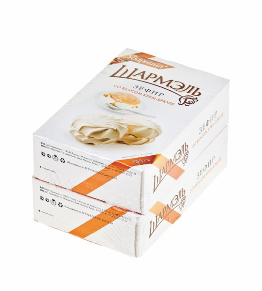 Зефир УДАРНИЦА Шармэль со вкусом крем-брюле, 255 г нежно-молочного цвета отличается характерным ароматом и приятным вкусом. Тающее во рту нежное суфле напоминает вкус детства. Яблочное пюре, которое используется при производстве зефира, указывает на наличие питательных свойств, а также на полезность продукта. Изделие упаковано в красивую коробку, где каждое суфле лежит на подложке, завернутой в целлофан. Зефир Шармэль – не только популярное, но и любимое многими лакомство. Приобрести зефир УДАРНИЦА Шармэль со вкусом крем-брюле, 255 г в Москве всегда можно в торговом центре METRO.Производитель: ОАО «Ударница», Россия, ул. Шаболовка, 13.Состав: сахар-песок, пюре яблочное, патока, сахарная пудра, белок яичный сухой, желеобразователь – агар, порошок яблочный, регулятор кислотности – кислота молочная, цитрат натрия, ароматизатор, красители натуральные – кармин, куркумин, сахарный колер.Пищевая ценность: белки – 1 г, углеводы – 79 г.Энергетическая ценность: 322 ккал. Срок годности: 60 дней.Условия хранения: хранить при температуре не более 25°C и относительной влажности воздуха не более 30-75%; не подвергать воздействию прямого солнечного света.