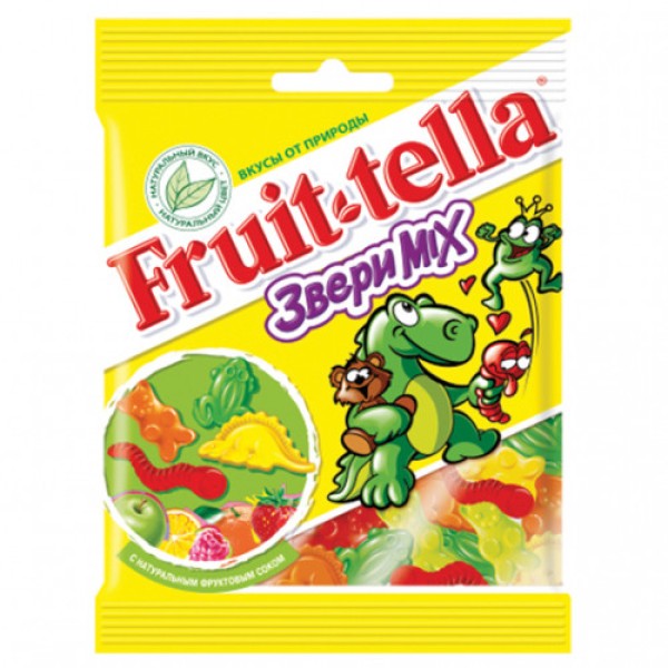 Мармелад FRUITTELLA Звери Mix, 70 г – вкусное лакомство, которое понравится и ребенку, и взрослому. Каждая мармеладка приготовлена в форме животного, имеет яркий и свежий вкус, который достигается благодаря использованию в составе натуральных соков: яблочного, малинового, лимонного и апельсинового.Все разнообразие насыщенных цветов продукту придают исключительно натуральные красители. В их числе концентраты лимона, моркови, редиса, черной смородины и гибискуса.Вашему ребенку обязательно понравится это лакомство, которое является не только очень вкусным, но и абсолютно натуральным.В торговом центре METRO в Москве вы всегда сможете купить мармелад FRUITTELLA Звери Mix, 70г по выгодной цене.Страна производства: Россия.Рекомендуемая температура хранения: от +5 до +25°C.Энергетическая ценность (ккал/100г.): 333.Пищевая ценность (г/100г.): белки – 7,2; жиры – 0,2; углеводы – 74,8.Состав продукта: сироп глюкозы, сахар, желатин, концентрированные фруктовые соки (апельсиновый, яблочный, лимонный, малиновый и клубничный), декстроза, лимонная кислота, натуральные ароматизаторы, концентраты (тыква, морковь, спирулина, яблоко, лимон, сафлор, гибискус, редис, томат) глазирователи (карнаубский воск, пчелиный воск