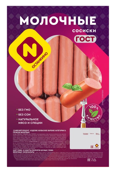 АКЦИЯ!!! Сосиски Молочные ГОСТ ц/о 400г Останкино