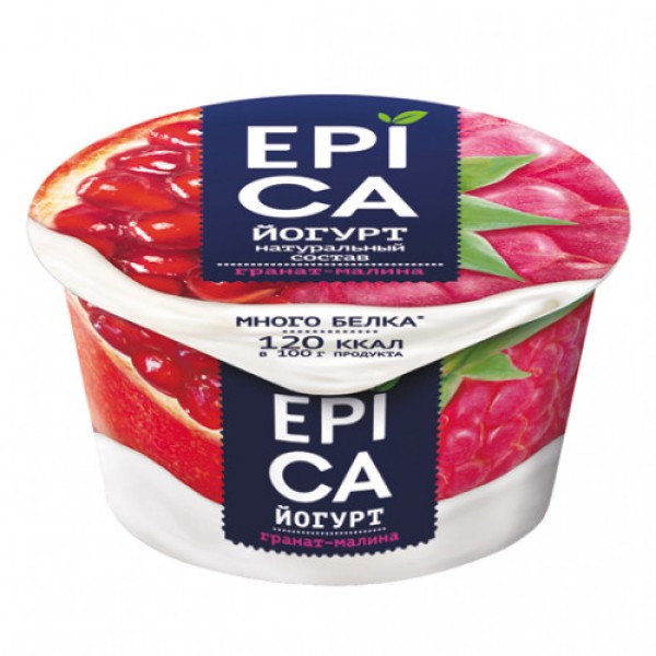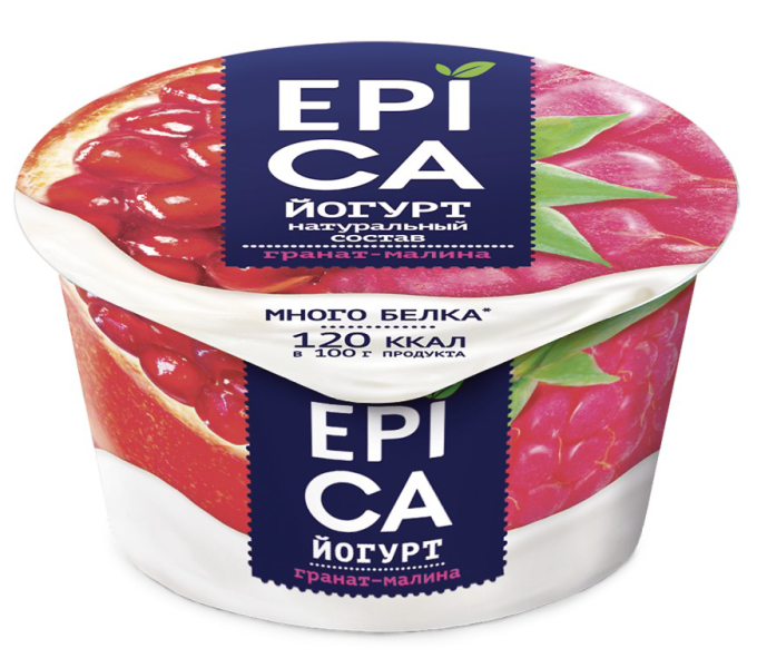 Описание и характеристики Йогурт Epica с гранатом и малиной 4,8% 130г. Массовая доля жира 4,8%. Состав: обезжиренное молоко, наполнитель "Гранат-малина" (сахар, гранатовый сок, малина, вода, кукурузный крахмал, натуральный ароматизатор, концентрат из моркови, загуститель – камедь рожкового дерева), сливки, йогуртовая закваска, пробиотические культуры. Пищевая ценность в 100 г: жиров 4,8 г, белков 5,7 г, углеводов 13,7 г (в том числе сахарозы 8,5 г). Энергетическая ценность 510 кДж/120 ккал. Хранить при температуре от +2 до +6'С. Срок годности 38 суток. ТУ 9222-002-18252860-2014