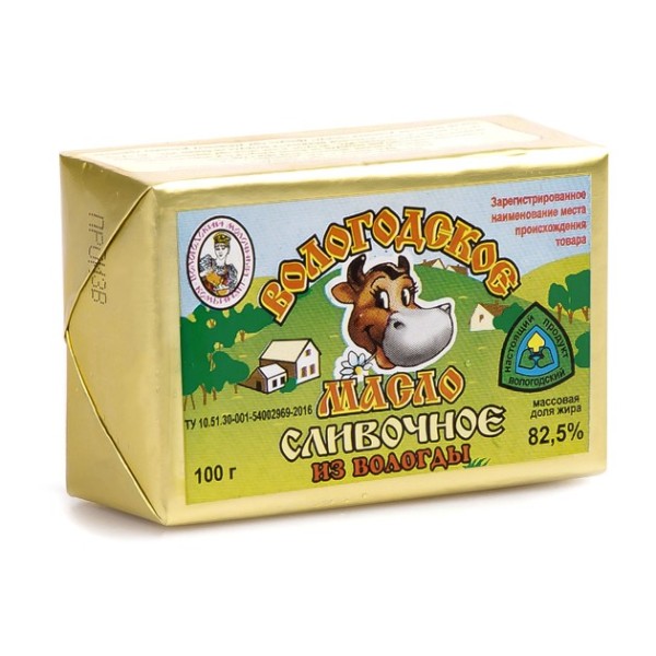 БЗМЖ Масло сливочное Вологодское из Вологды 82,5% 100г