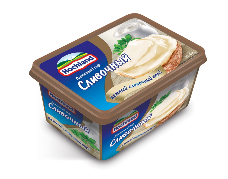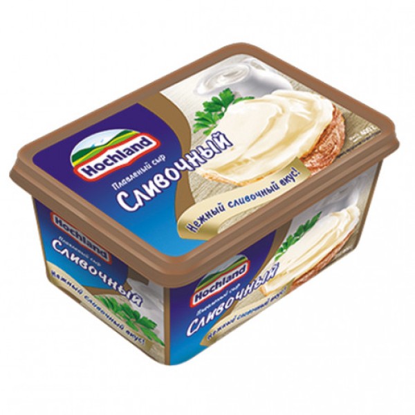 Сыр плавленый HOCHLAND сливочный, 400 г — это вкусный источник жиров, белков, кальция и молочного протеина, полезный для взрослых и детей. У него нежная консистенция, мягкий сбалансированный вкус, продолжительное немного сладковатое послевкусие. Продукт можно есть просто так, намазывать на хлеб или крекеры, добавлять в холодные или горячие блюда, чтобы придать сливочный вкус и получить аппетитную сырную тягучесть. Упаковка на 400 г — удобный формат для большой семьи. В составе сыра нет красителей, ароматизаторов, растительных заменителей жира. Продукт поставляется в прочной пластиковой упаковке, которая защищает содержимое от прямых солнечных лучей и не пропускает посторонние запахи. Приобрести сыр плавленый HOCHLAND сливочный, 400 г можно в Москве в торговом центре METRO.Бренд: HOCHLAND.Тип продукта: плавленый сыр сливочный.Жирность: 55%.Молоко: коровье.Состав: сыры полутвердые, масло сливочное, молоко сухое обезжиренное, белок молочный, эмульгаторы (Е331, Е452, Е450), регулятор кислотности лимонная кислота, консервант низин, соль пищевая, вода питьевая.Пищевая ценность: белки — 9,7 г, жиры — 26 г, углеводы — 4,6 г.Энергетическая ценность: 292 ккал.Условия хранения: хранить в сухом прохладном месте, при температуре от +2 до +8 градусов Цельсия и относительной влажности 75%.Вид упаковки: пластиковый стакан.Срок хранения: 180 дней.Вес: 400 г.Страна-производитель: Россия.